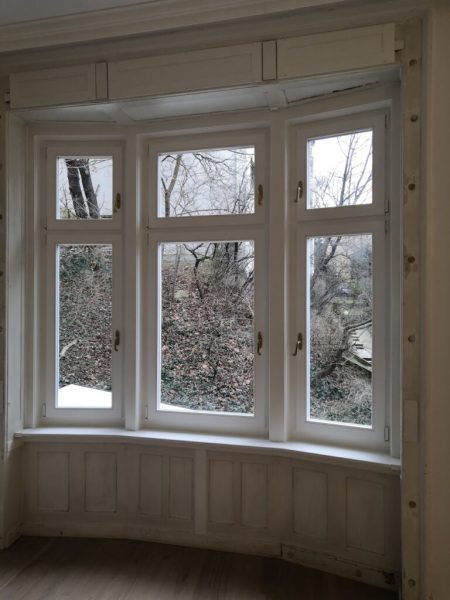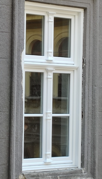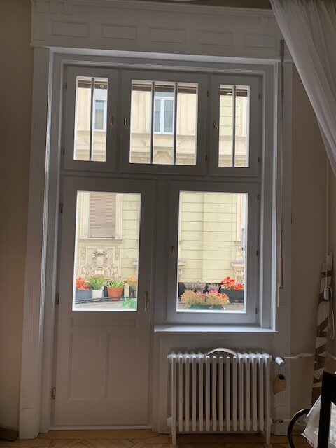 Műemléki jellegű társasházi ablakok precíz gyártása, az eredeti arányok megtartásával és korszerű üvegezéssel.